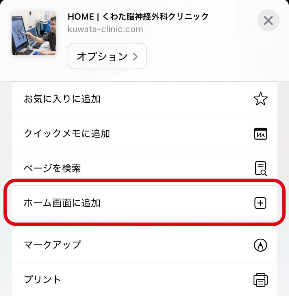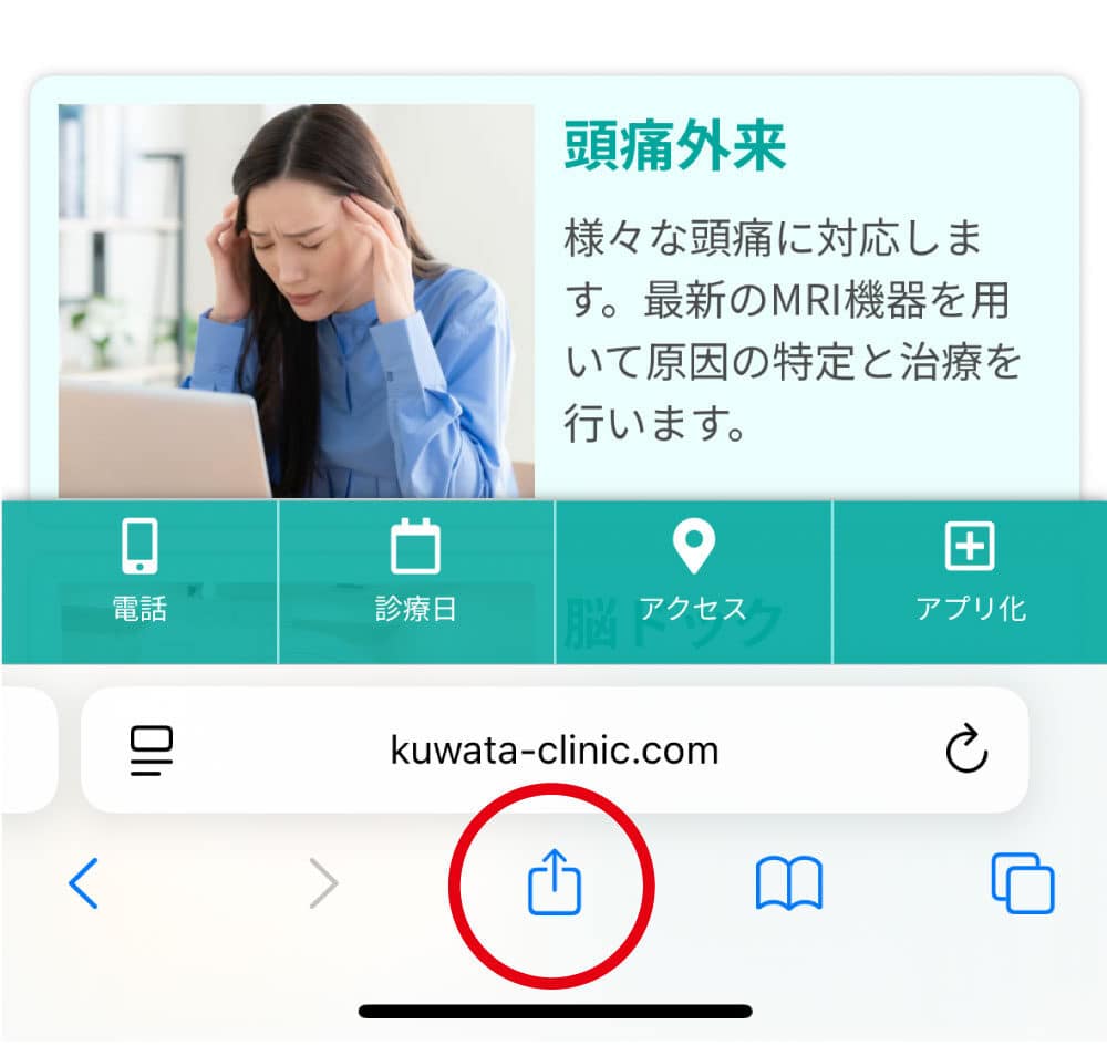 以下のボタンからインストールが可能です。「アプリ登録」をタップしたあと「インストール」をタップしてください。インストールが完了すると、ホーム画面にくわた脳神経外科のアイコンが表示されます。